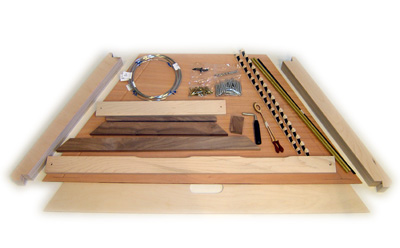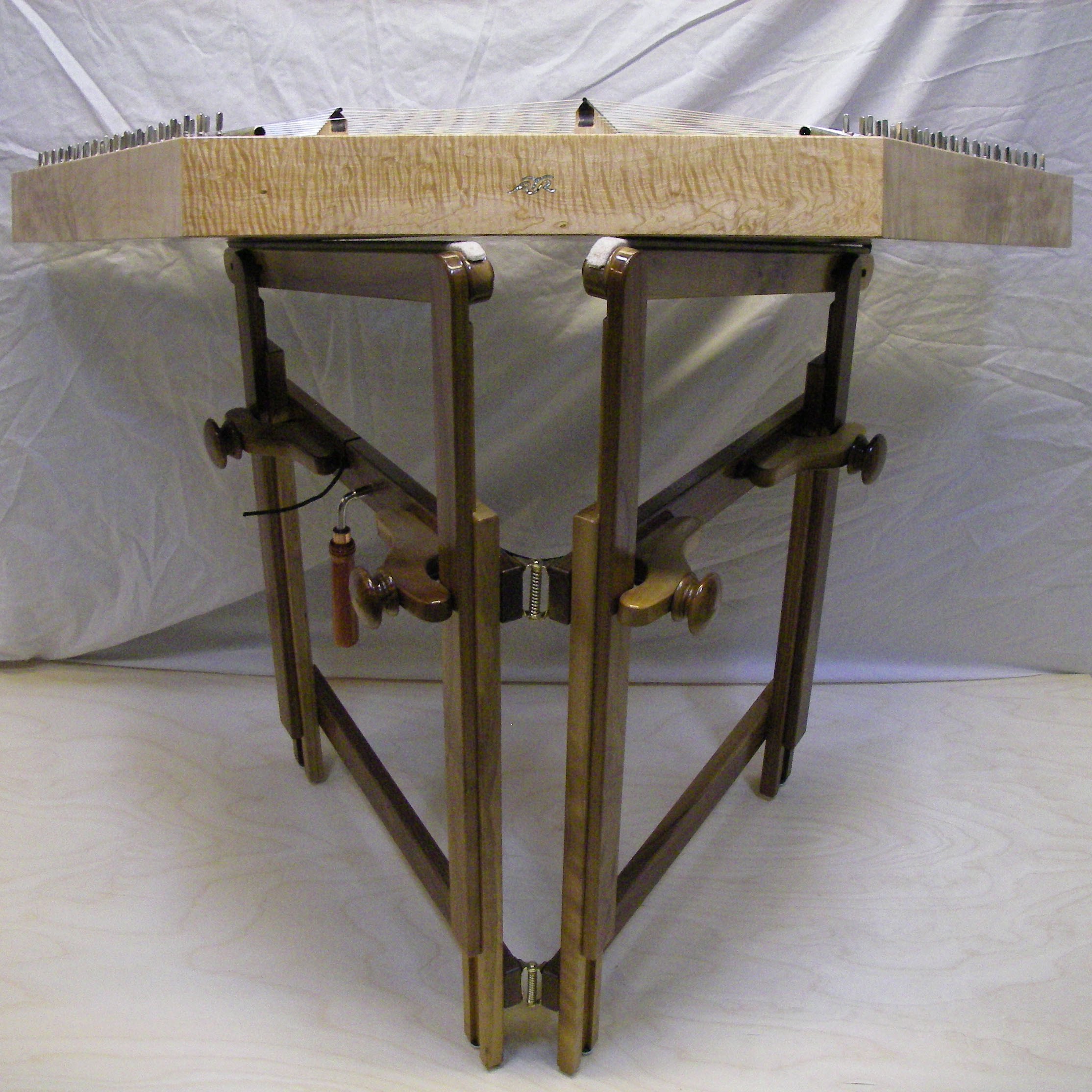 For Christmas this year 2009, I built Steph a Hammered Dulcimer based on a Musicmaker's Kits kit, with a stand built out of walnut from Musicmaker's plans. Also purchased from Musicmaker's, were a pair of upgraded hammers, two doily rosettes, and a padded case.